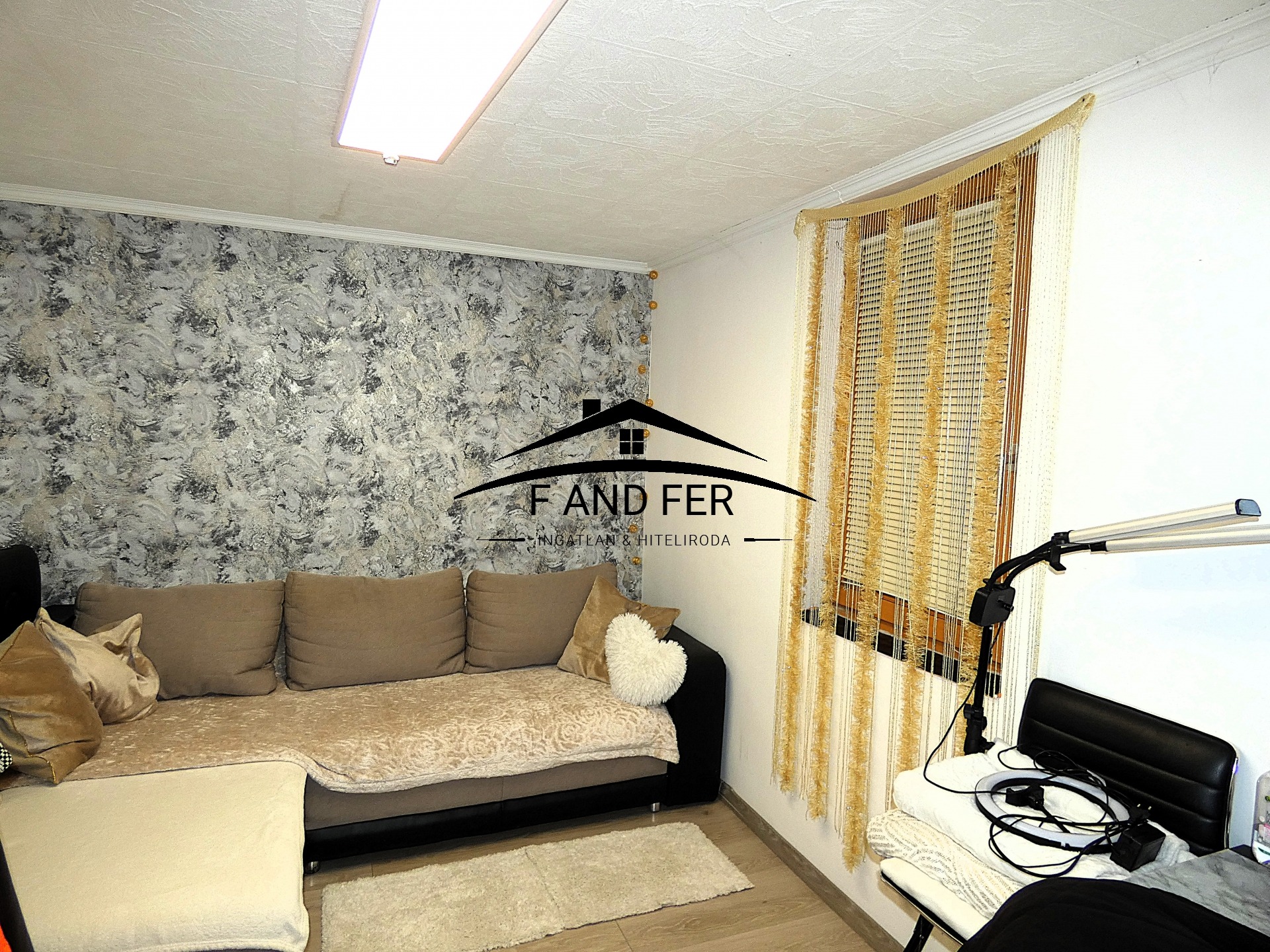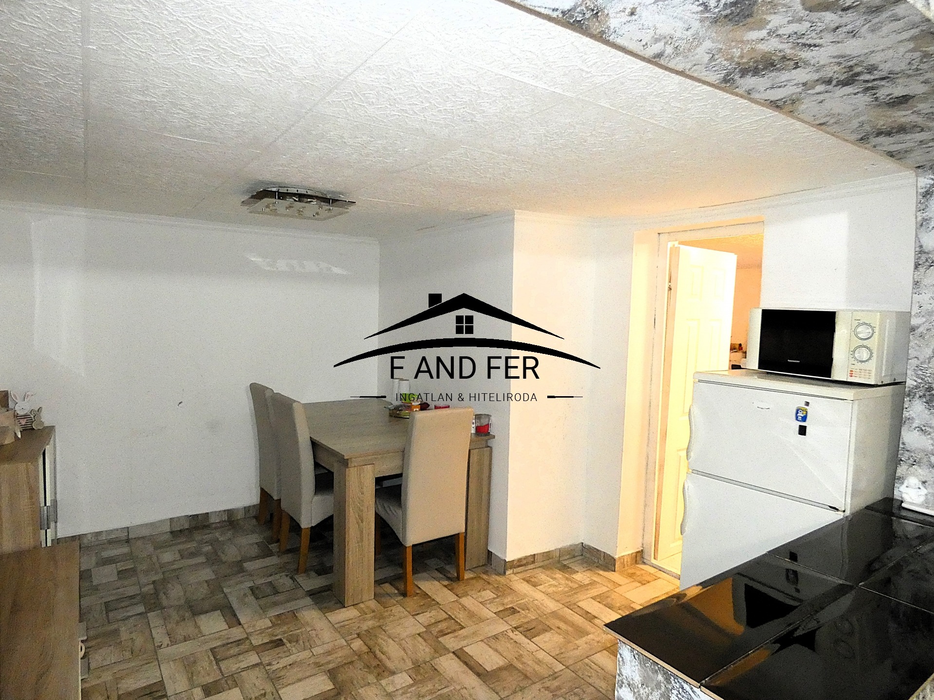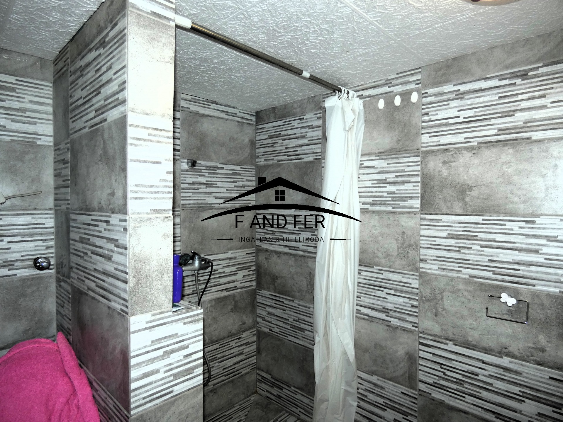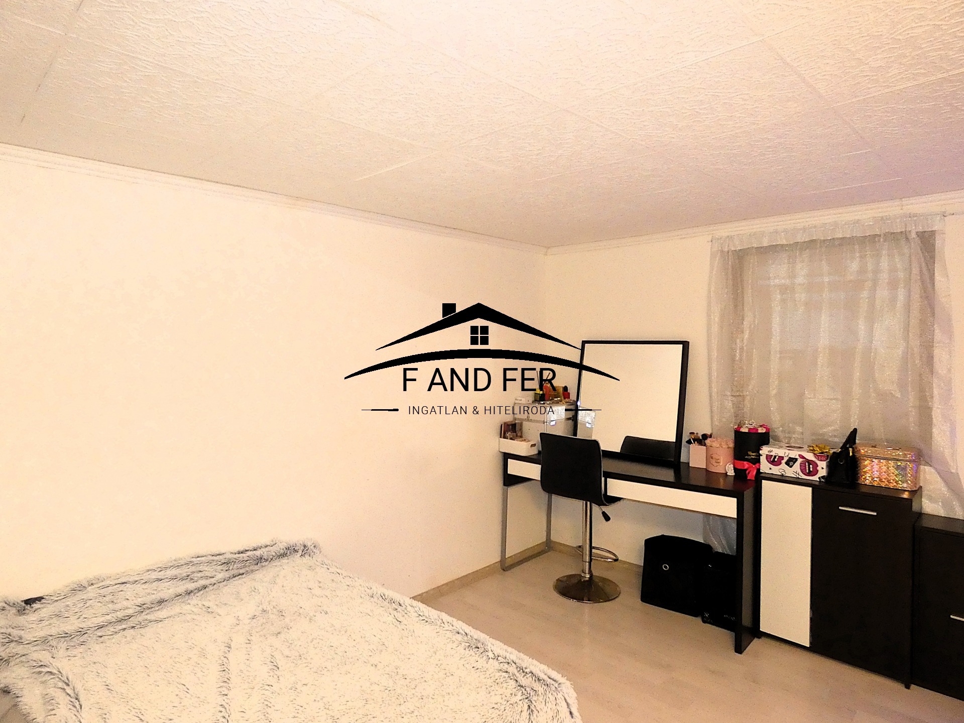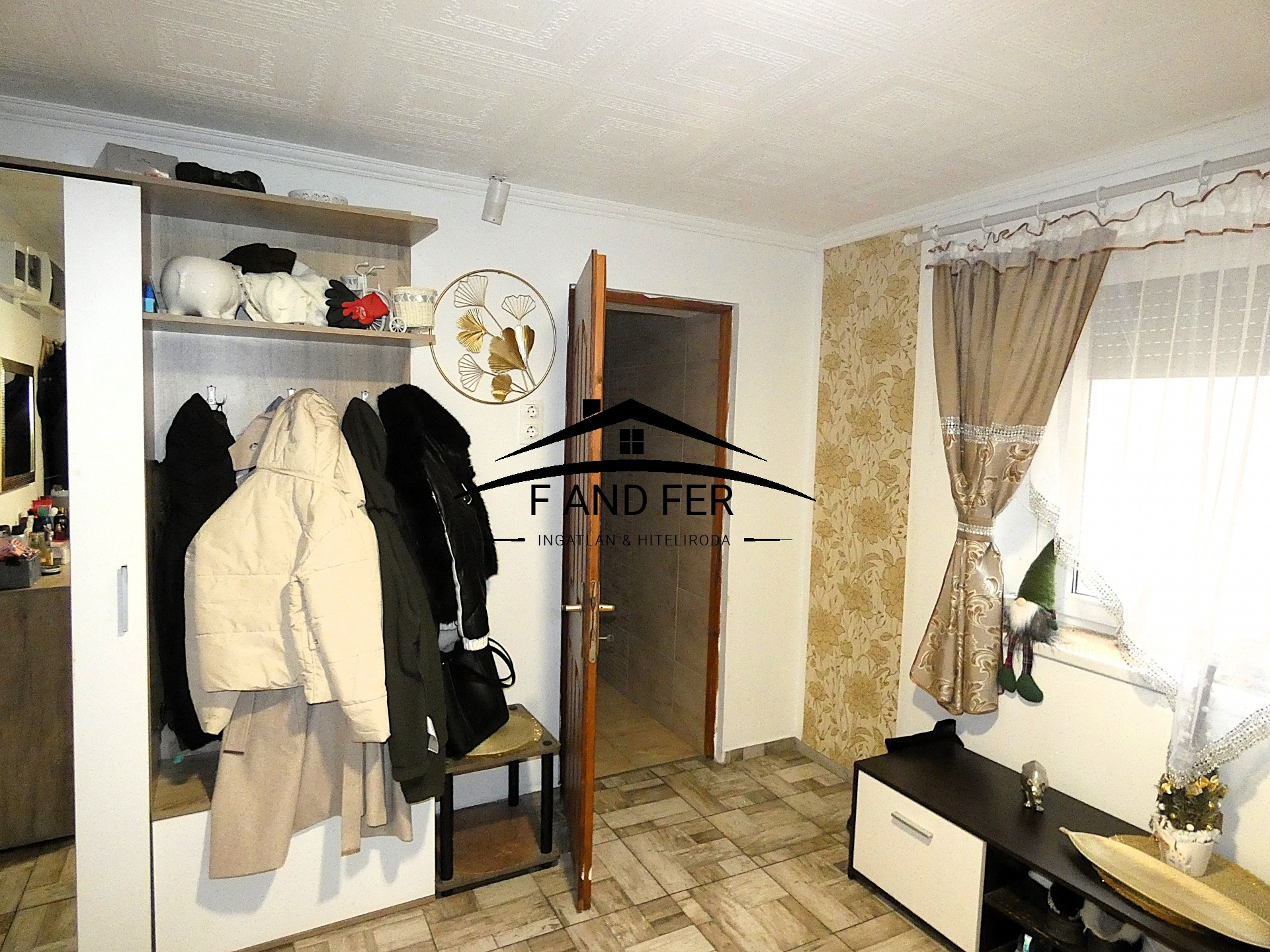• A helyiségek ízlésesen burkoltak – a szobákban laminált parketta, a konyhában, közlekedőben és fürdőkben mázas kerámia található,