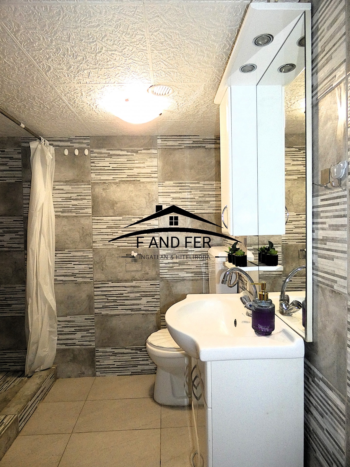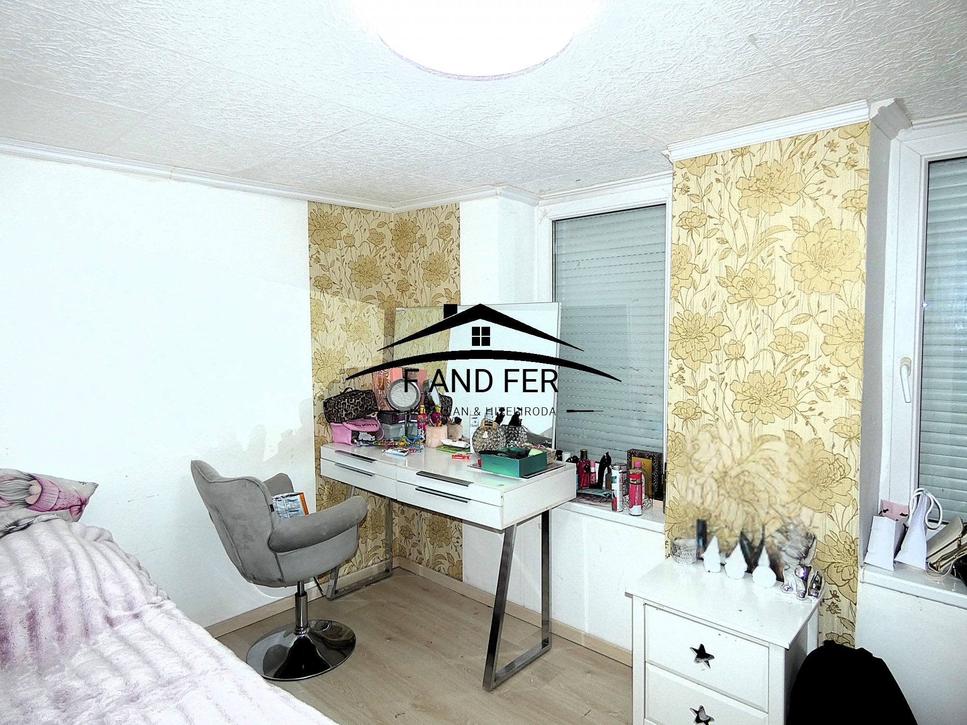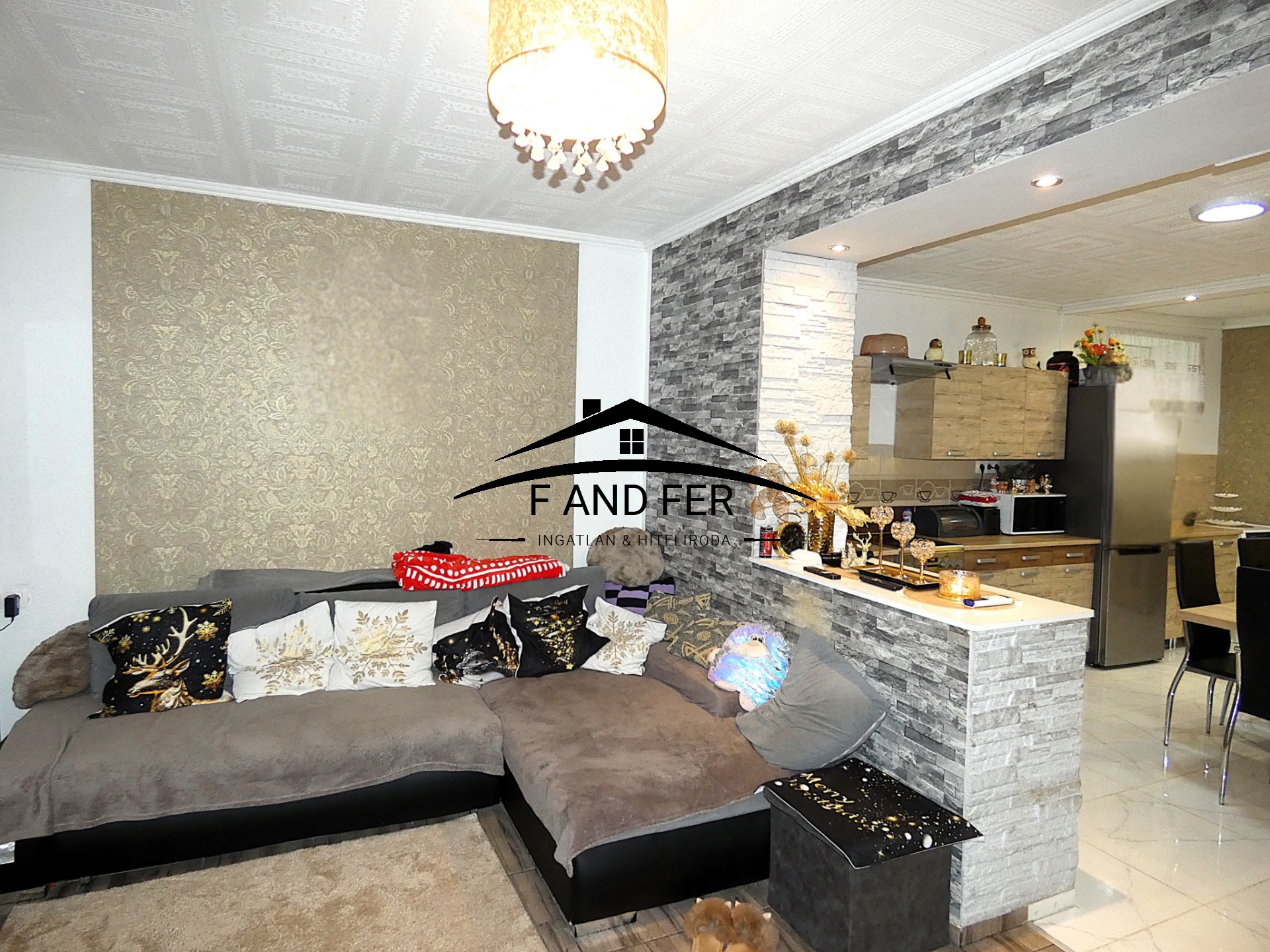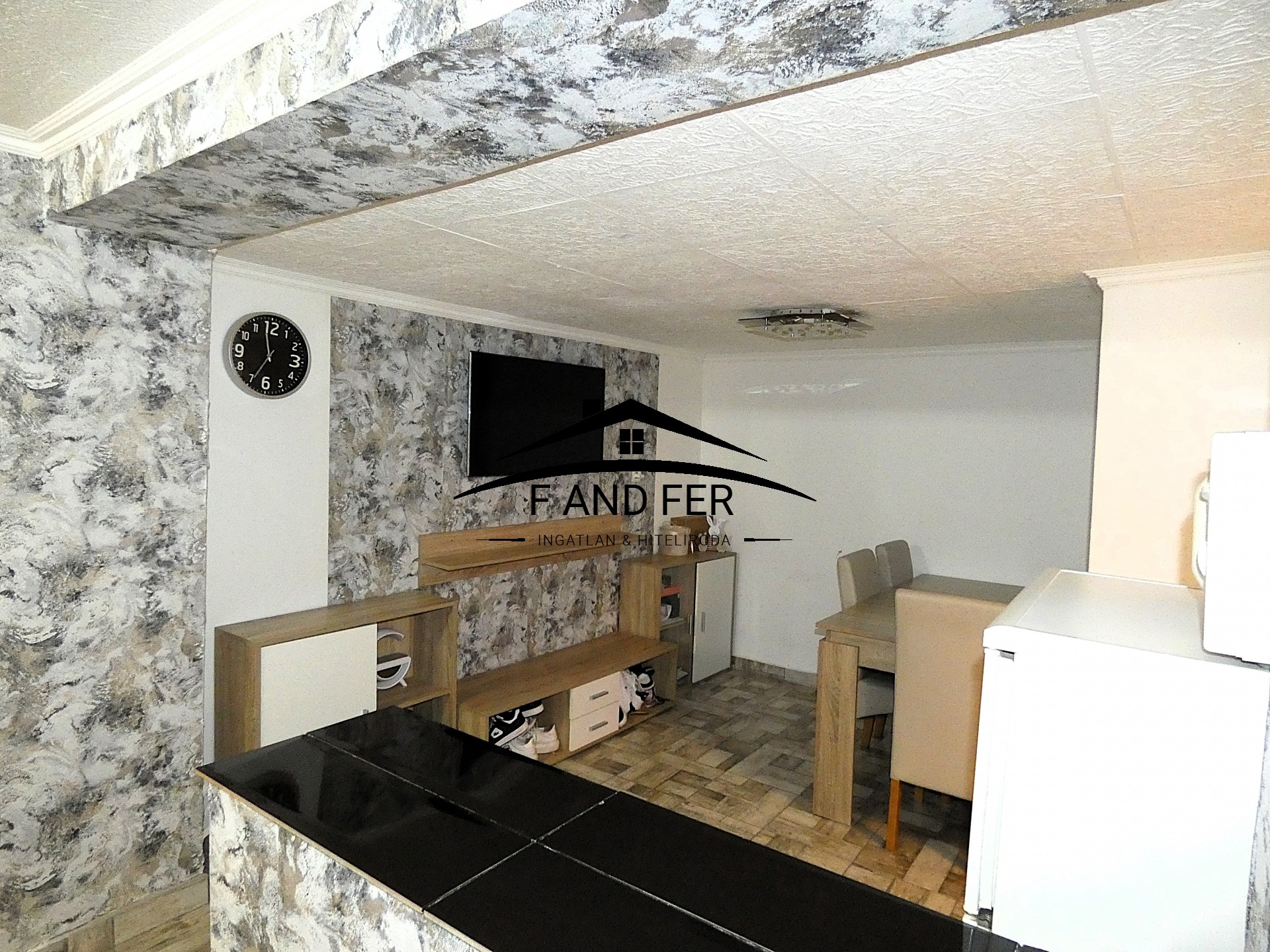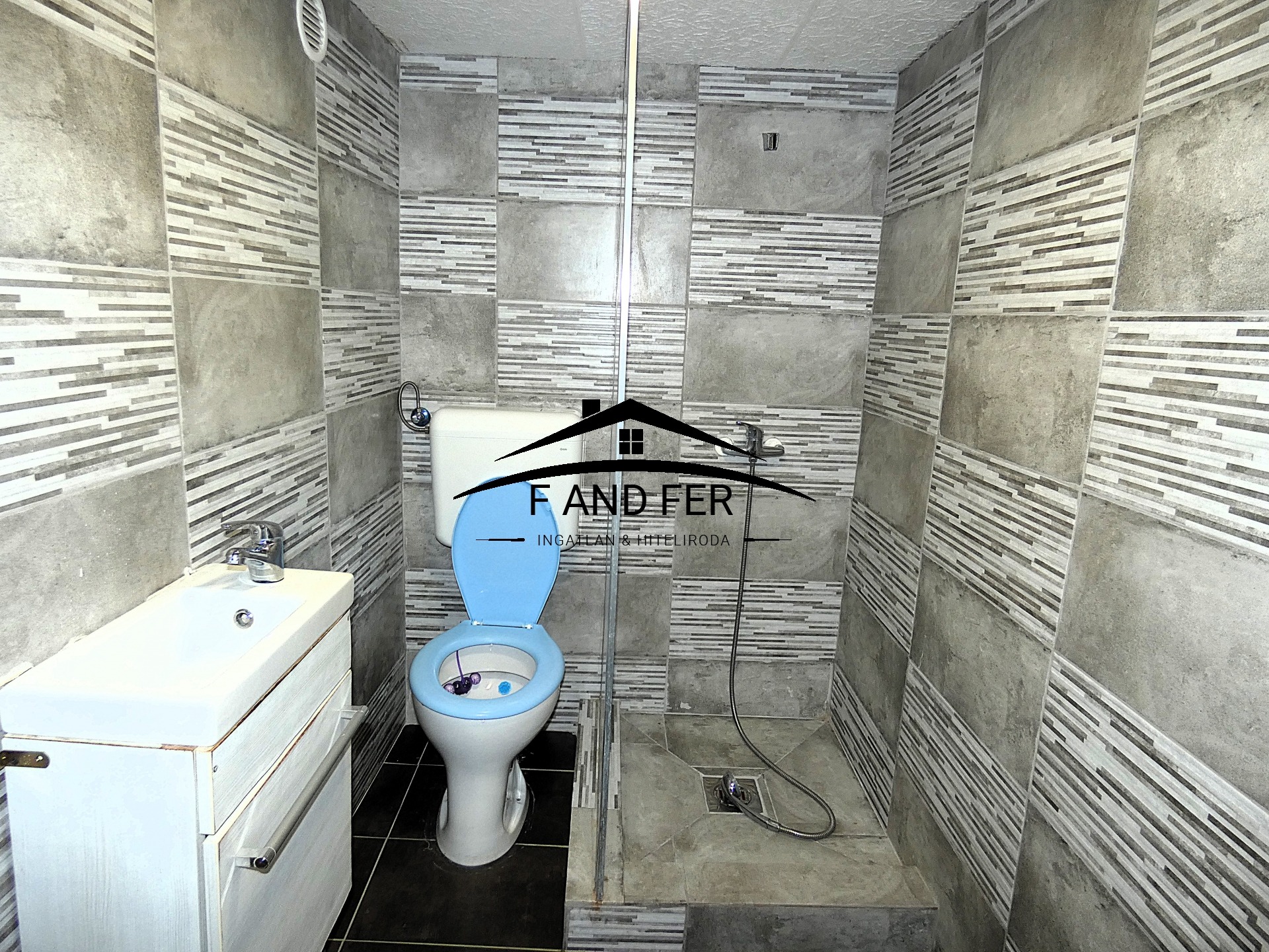• A helyiségek ízlésesen burkoltak – a szobákban laminált parketta, a konyhában, közlekedőben és fürdőkben mázas kerámia található,