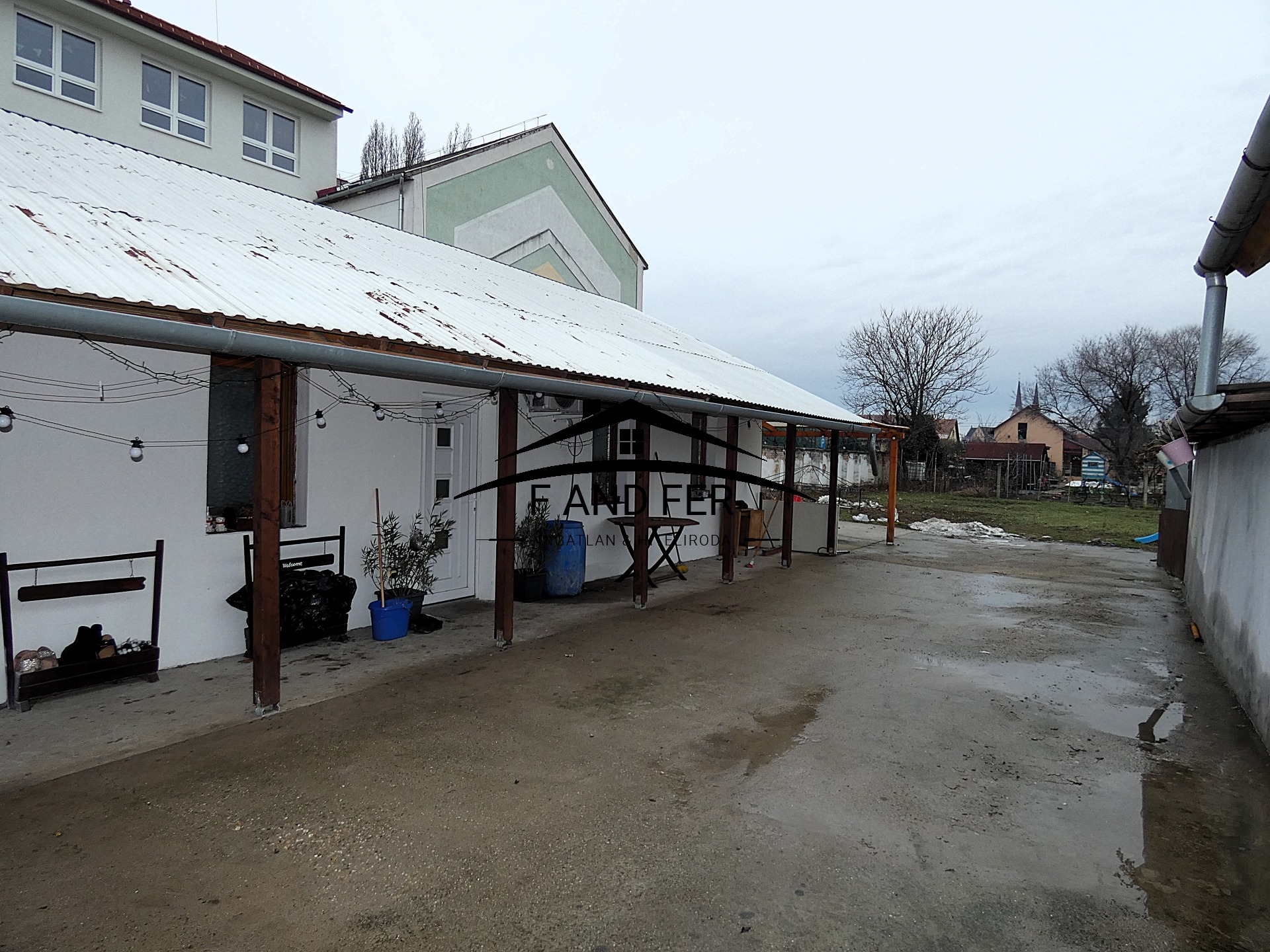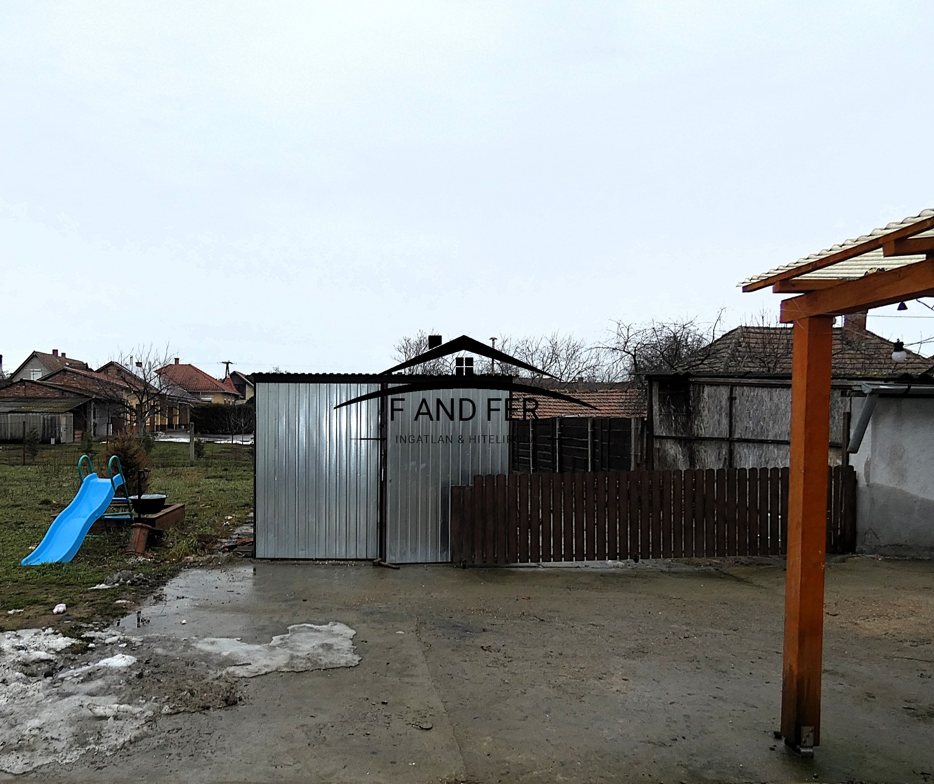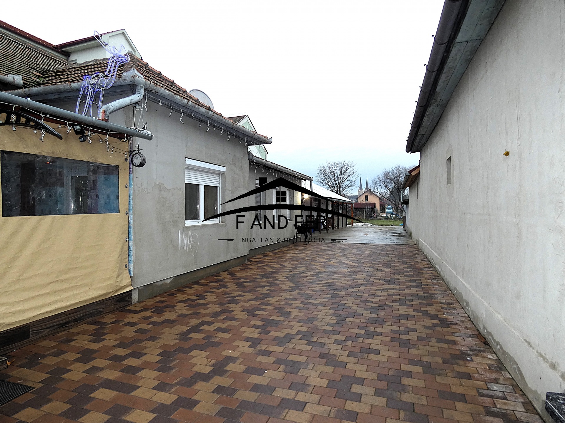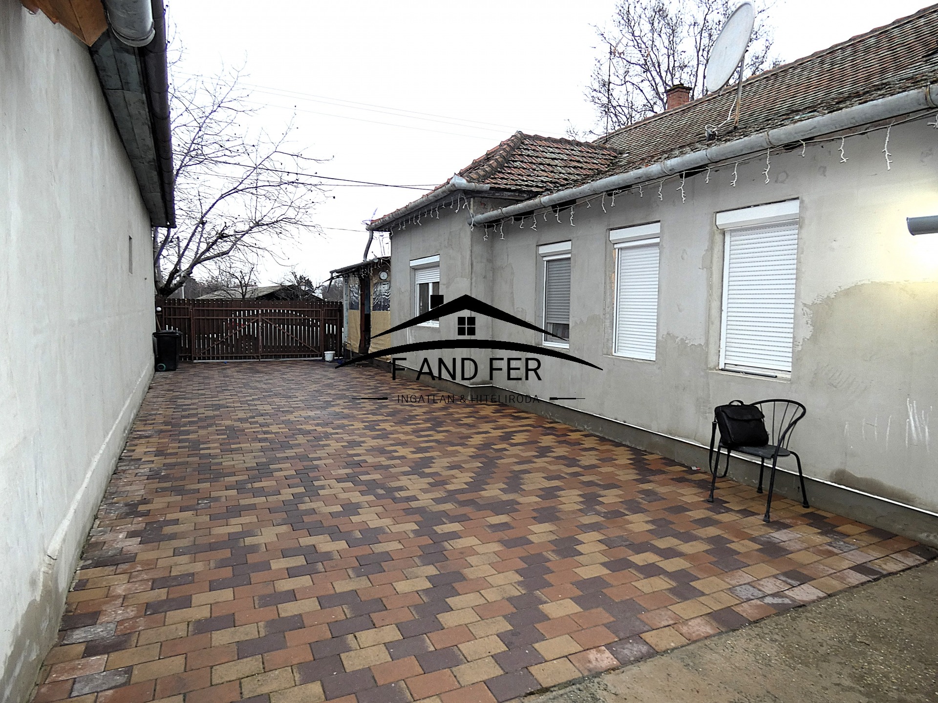 A teljesen térkövezett és betonozott belső udvar, valamint a L-alakú telek kényelmes parkolást és rendezett megjelenést biztosít. A lemezgarázs az ár részét képezi.